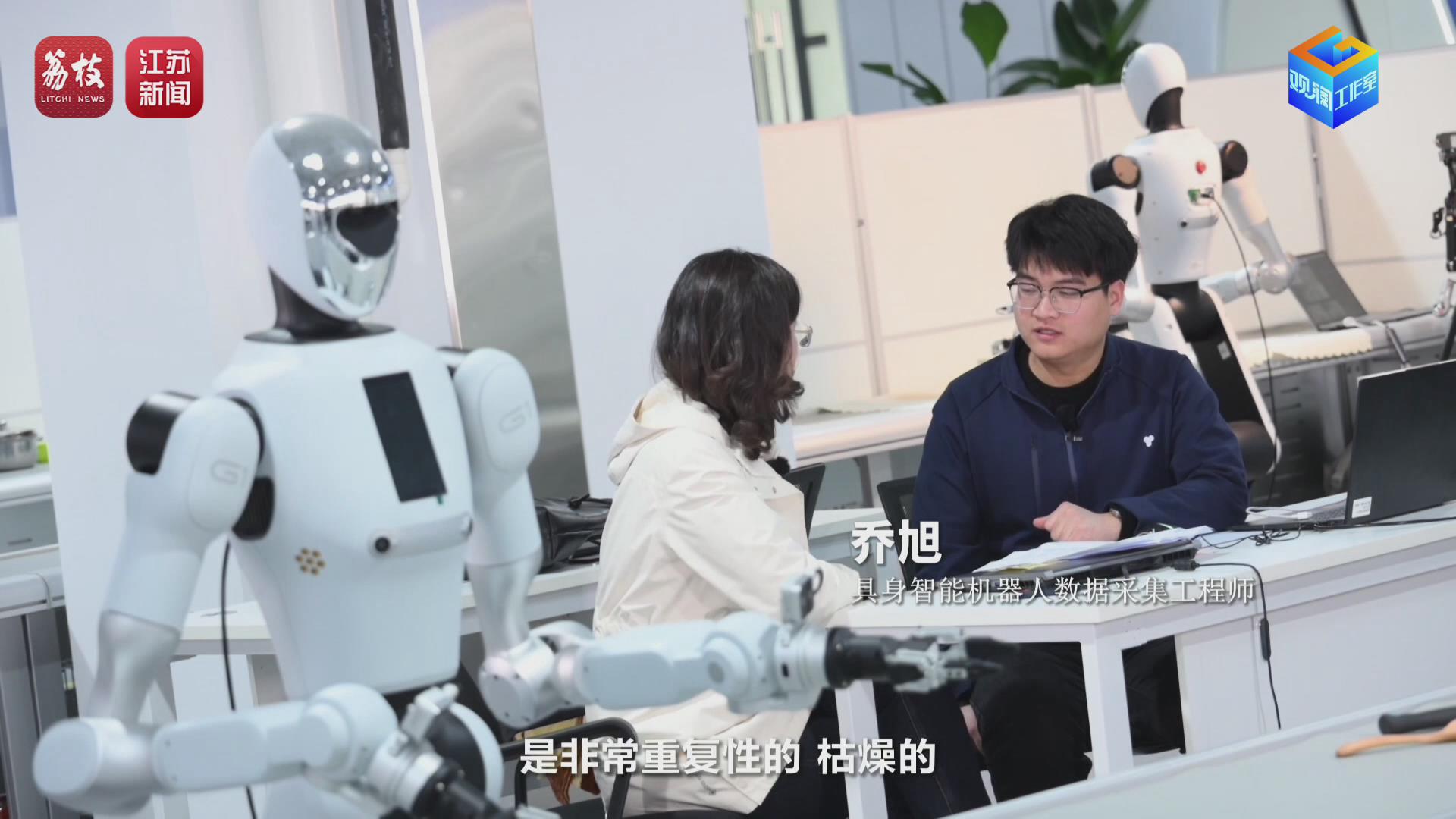 2026年2月,荔枝新闻中心不雅澜责任室记者姜超楠在位于无锡的江苏省具身智能机器东谈主工业数据网罗与实训中心见到了正在教“赛博小伙”学干活的乔旭和他的伙伴们。乔旭,2025年应届毕业生,才责任就搭上了具身智能发展的“高铁”,成为江苏第一批具身智能机器东谈主数据网罗工程师。