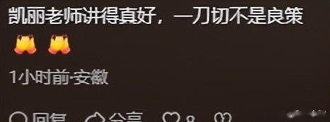 张凯丽说,不成光是不容,一刀切细则不行,越不让玩,孩子越想玩,心里憋闷了,反而会不服,大众也齐认为是这个理儿,昔日好多教学齐解释了这少许。